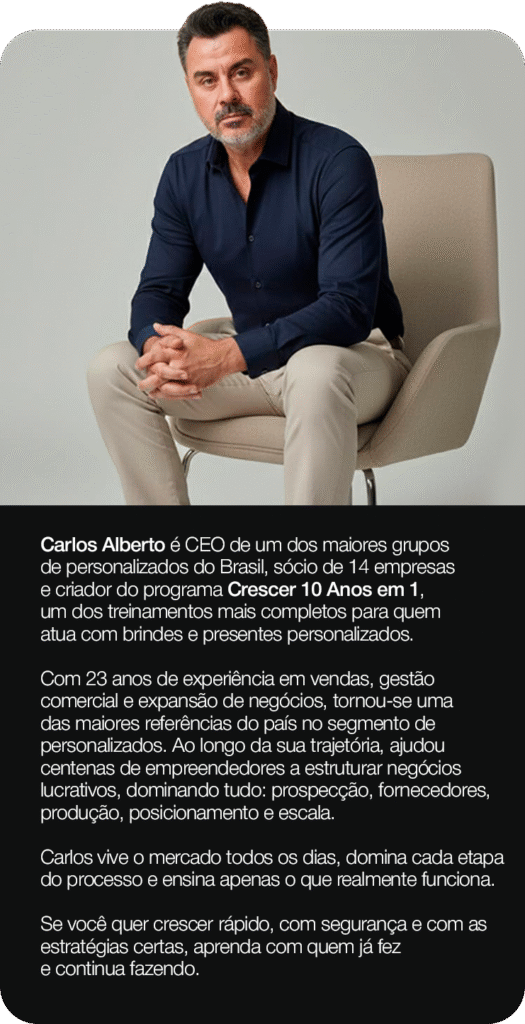 Eu sempre quis trabalhar com personalizados, mas não sabia onde encontrar fornecedores confiáveis. Com o guia, fiz meu primeiro pedido em menos de uma semana e já vendi minhas primeiras 40 unidades. O lucro foi muito maior do que eu imaginava.